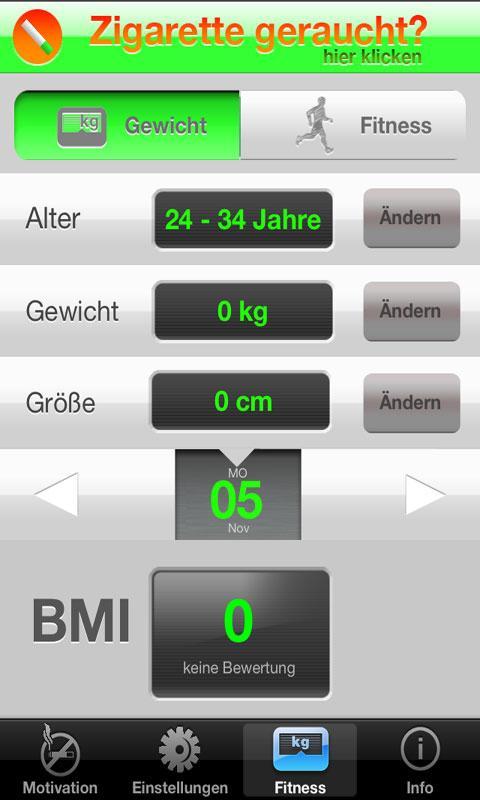 첫 번째 ohnekippe Day, 상자 담배 가격, 하루 평균 소비 및 카운트 다운이 진행됩니다! 니코틴 없이는 더 오래 견딜 수있을수록 더 행복한 얼룩을 만듭니다. 또한 통계 개요와 높은 점수에 동기를 부여합니다.